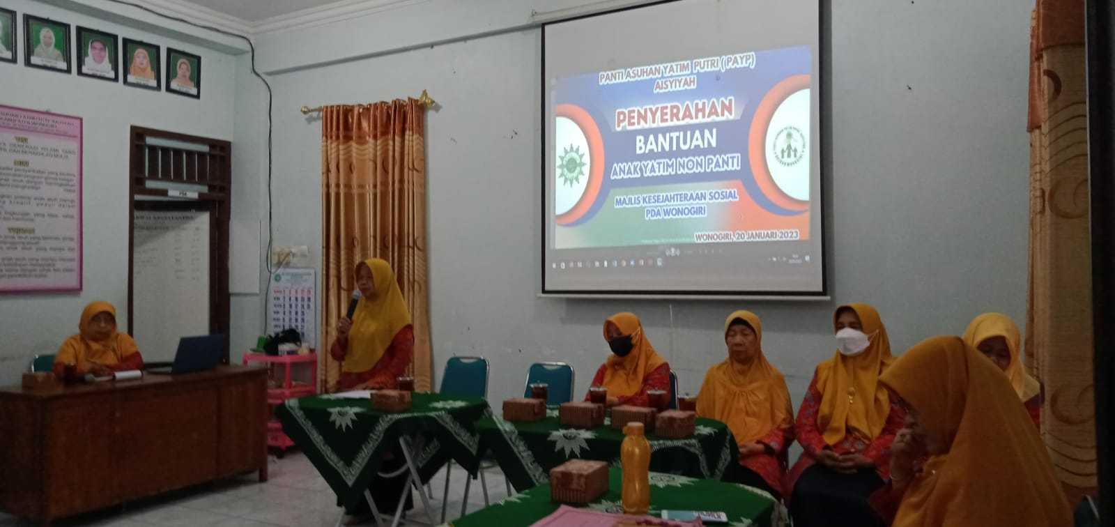 Pada hari Ahad 10 Maret 2024 telah dilaksanakan santunan anak yatim dan santunan dhu’afa oleh Pimpinan Daerah ‘Aisyiyah Kabupaten Wonogiri. Kegiatan tersebut merupakan salah satu program dari Majelis Kesejahteraan Sosial.